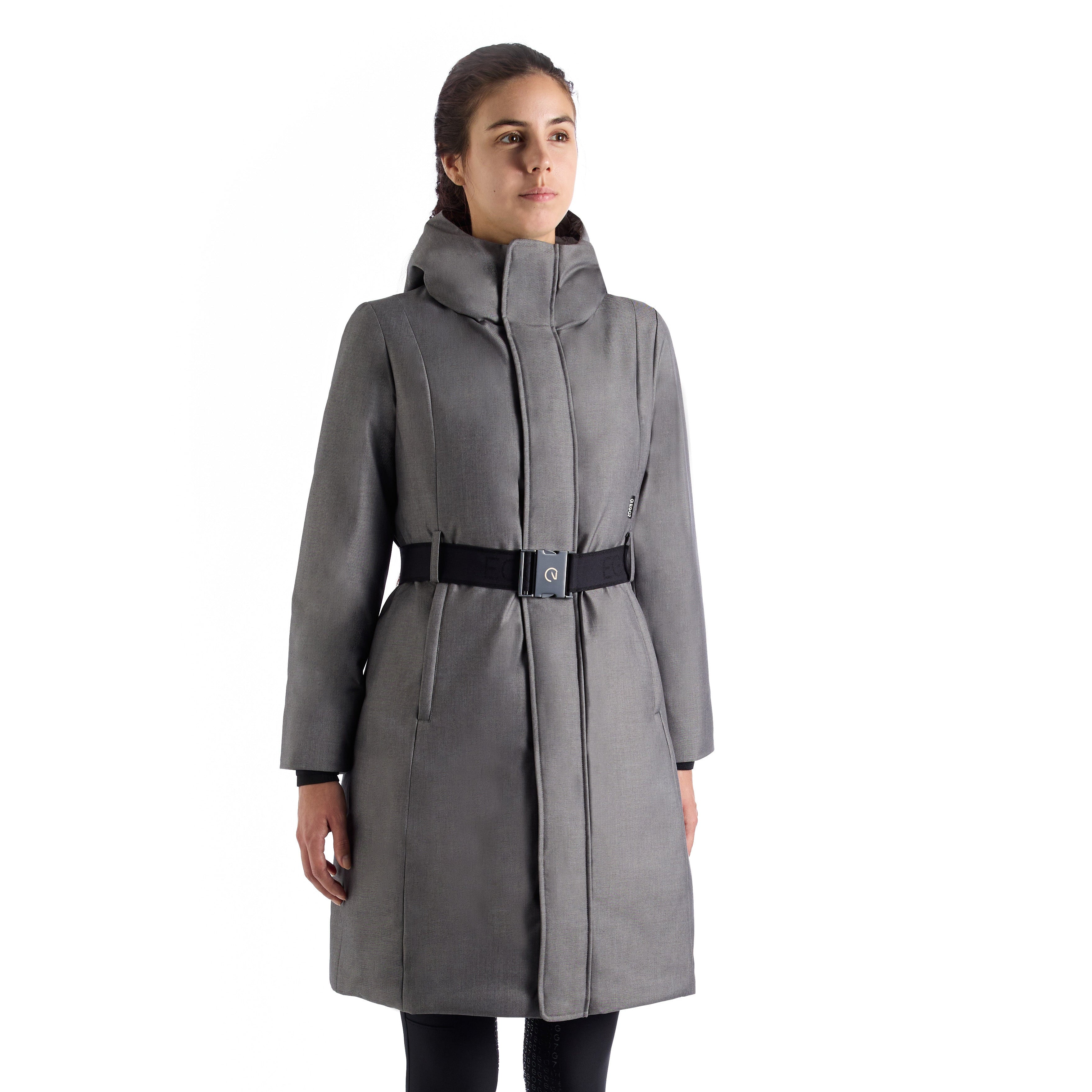 EGO7 Vivienne Long Padded Parka Jacket effortlessly combines warmth, elegance, and functionality. Filled with rich, down-like injected padding, it offers exceptional insulation against winter's chill and the cooler seasons. Crafted from durable, eco-friendly materials, resisting washes, the winter jacket features a sumptuous, technical texture that ensures a flawless fit while delivering wind resistance, and climate control—perfect for equestrian activities.