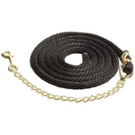 Soft braided nylon with 24" (60cm) brass plated chain. Popular for use with anti-rearing bits and lead-in bridles.