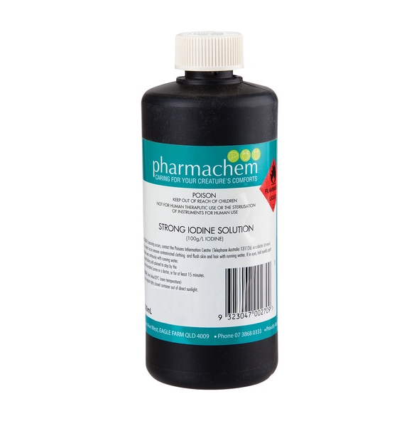 Pharmachem Strong 10% Iodine Solution is an antiseptic which is nonirritating , nontoxic and nonstaining. It is a broad spectrum antimicrobial agent. The iodine acts by diffusing into bacterial cells and killing them. Iodine is virucidal and antifungal with bacterial spores being killed in 15 minutes.