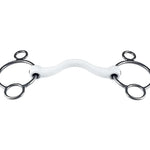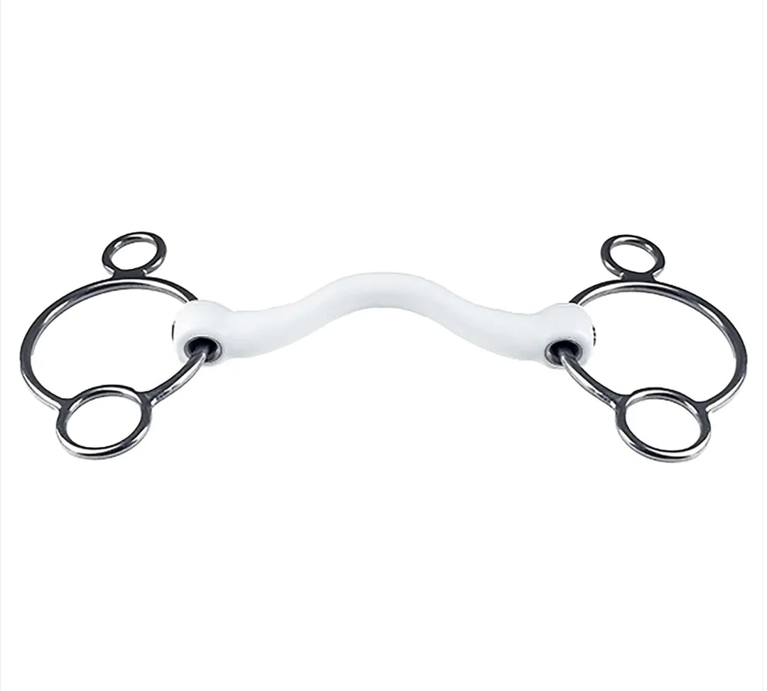 A 2.5 ring bit is a milder version of a 3 ring (pessoa) bit. With this bit a leverage can be created. The lower the reins are placed, the stronger the bit becomes. An ideal bit for horses that are very strong or hold the bit. Compared to the 2.5 ring, the eggbut rings cannot move loosely and therefore the rein aid works more directly.